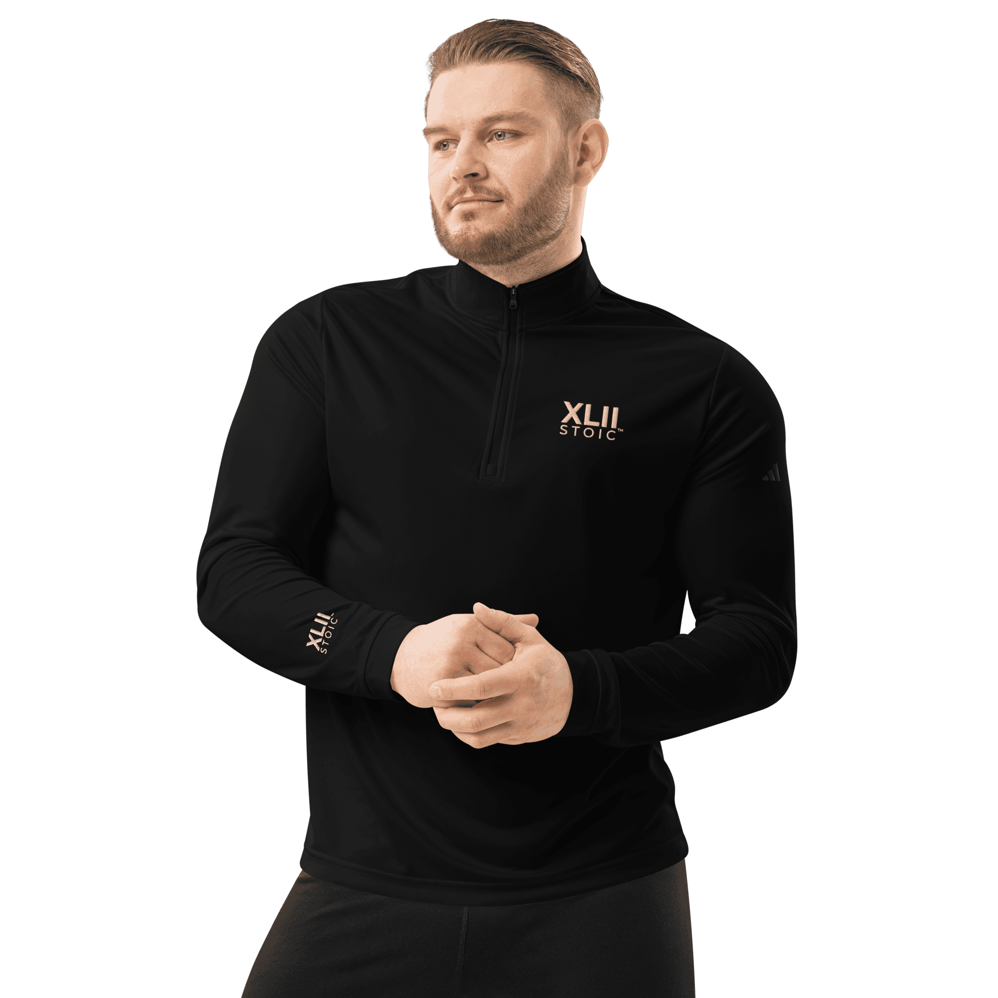 The XLIISTOIC Quarter Zip is engineered for those who train with discipline and dress with intention. Built on the Adidas A401 lightweight quarter-zip platform, it delivers moisture-wicking performance, UPF 50+ sun protection, and a clean athletic silhouette that moves from the gym to the street without missing a beat.